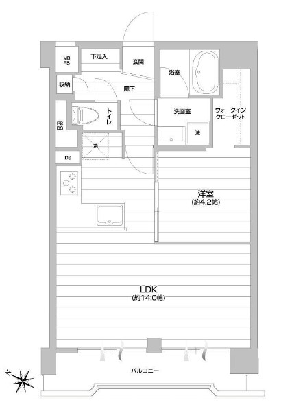 今回のお部屋は、1LDK、43.74㎡、1階。シングル、DINKSの方にお勧めです。