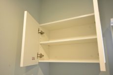洗濯機スペースの上部には吊戸棚があり、洗濯グッズをまとめておけます。少し低めに設置されているのが優しいですね(^^)洗濯機を置くと意外と届かないですから。