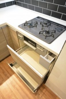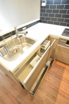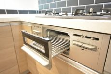浄水機能付きシャワー水栓、お手入れのしやすいガラストップコンロ、大容量の収納スペースなど機能も充実しています。
