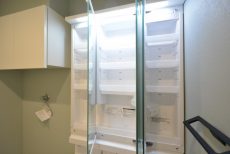 L字型のペニンシュラキッチンです。奥には冷蔵庫スペースも確保されていますが、サイズには注意しましょう。