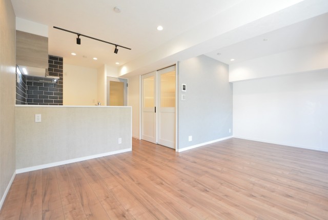 キッチン以外がほぼ四角く残っているので、レイアウトの自由度が高そうです。ダイニングテーブルを小さくしてリビングを充実させたり、寛げるような大きなダイニングテーブルでスペースに余裕を持たせたり…こういった事考えるのって楽しいですよね(*‘ω‘ *)