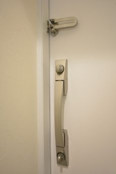 玄関ドアには安心のダブルロック。複数の鍵は防犯上有効ですからね。ダミーの鍵を付けている方もいらっしゃるとか^^;)