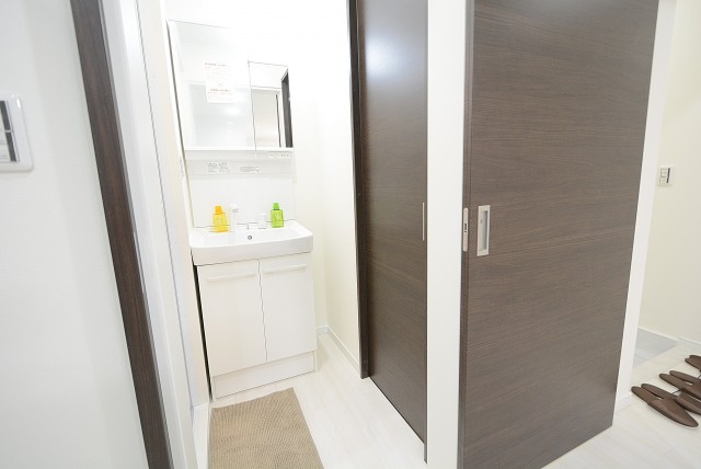 扉をススーッと横へスライドさせると・・・洗面室になっていました。