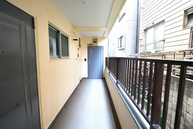 エレベーターの前を通過して扉をあけて共用廊下へ進みます。