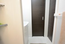 洗面化粧台向かって右隣の扉はトイレ。