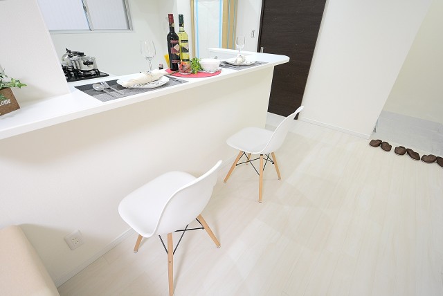 そしてキッチンの反対側は食事がとれるくらいのカウンターになっています。