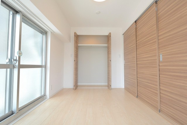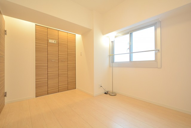 こちらは洋室。バルコニーに面した大きな窓のあるお部屋です。シンプルな色使いなので、家具やカーテンなども合わせ易そうですね。