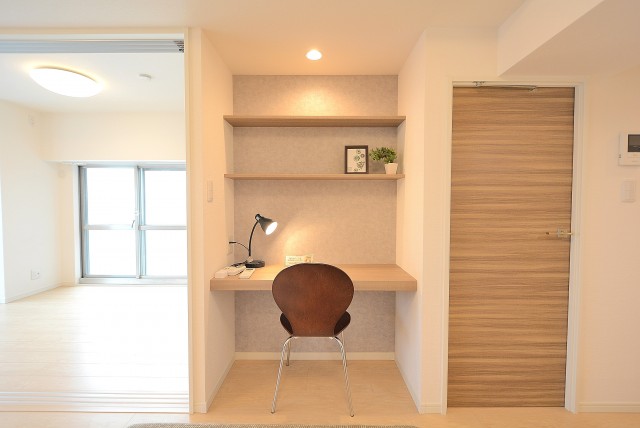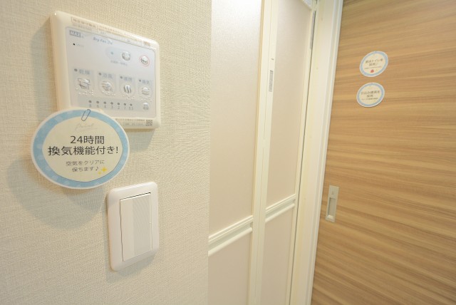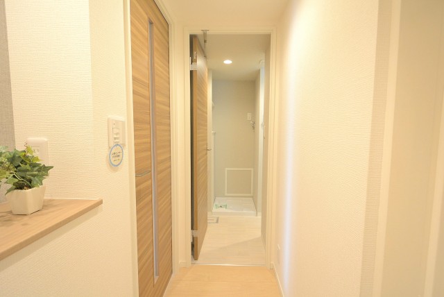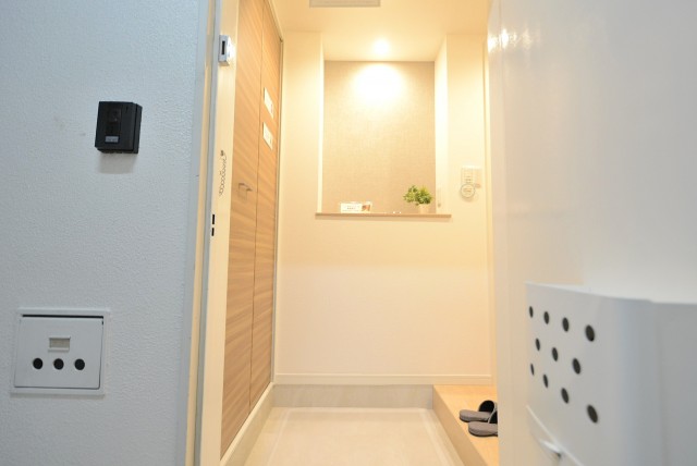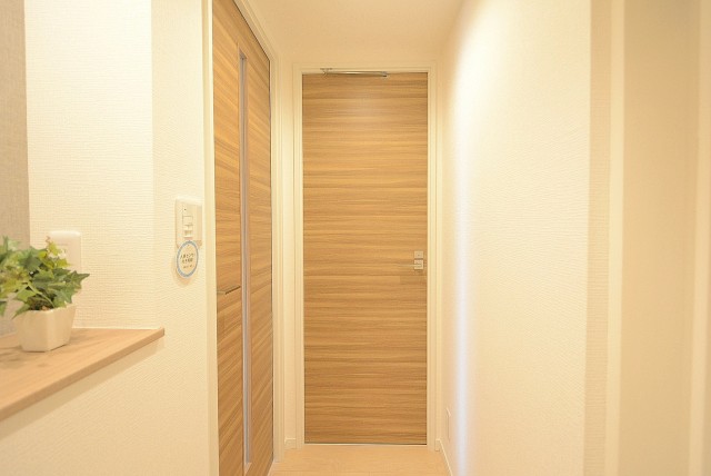 玄関横にはテレビモニター付きインターホンが設置されていて、お部屋の中から訪問者を確認する事が出来ます。ドアスコープもありますが、息を潜めて覗くのが苦手という方は結構いらっしゃるんではないかと思いますよ^^;)
