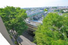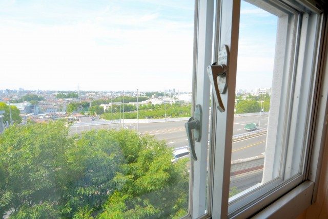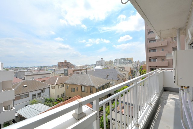 バルコニー正面には道を挟んで建物が建っていますので、眺めがいいわけではありません。ただ、隣までは距離がありますし、南北方向には抜けているので圧迫感を感じたりはしませんのでご安心下さい。北側を通る甲州街道からは車の音はしますが、二重サッシのおかげで室内ではそれ程気になりませんでしたよ。