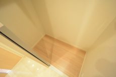 二か所に可動棚。リネン庫としてタオルを置いたり、ストックなどを置くのもいいですね。ただ、細かい物はボックスなどを用意して入れるとスッキリしますよ。洗濯機スペースの上部にも棚が設置されているので、お洗濯関係の物はこちらへどうぞ。使うそばに置くのが一番ですからね(^^)
