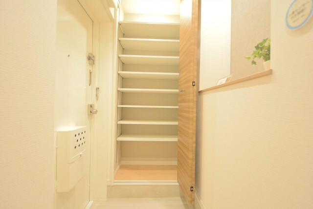 シューズボックスはトールタイプ。収納力抜群、棚を調節すればブーツなどの背の高い靴でも収納可能ですよ。