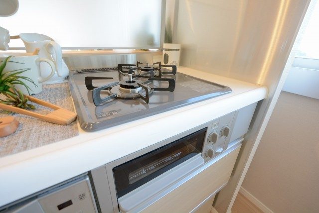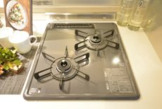 コンロは2口、グリルも付いて調理器具も充実。最近は電子レンジを使ったレシピなどもたくさん紹介されていますのでコンロは2つあれば十分かと思います。グリルも魚以外の食材でも活躍出来るので是非使ってやって下さい。