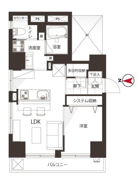 今回ご紹介するお部屋は2階、間取りは1LDK、専有面積は38.33㎡。お二人もしくは余裕のお一人暮らしという方にお勧めです。