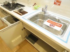 水栓に浄水機能付き、コンロは3口ガスコンロ、食洗機にグリル付きとキッチンはスペック◎。後は腕をふるうのみ!