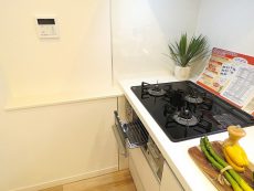 他には3口のグリル付きガスコンロ、食器洗浄機等が付いています。寝ている間に洗い物から乾燥までボタン一つで働いてくれる食器洗浄機はあるのと無いのとでは大違いですよ。