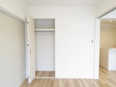 廊下右手にある洋室5.5帖です。壁いっぱいがクローゼット!衣類もしっかりとまとめられそうですね!
