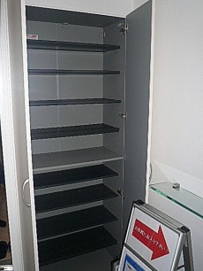右はトールタイプのシューズボックス。大容量&可変棚でブーツなど背の高い靴でも収納可能です。