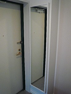 トールサイズのミラーは、お出かけ前の身だしなみチェックに!トールサイズの玄関主収納は、両開きでみやすくたっぷりとシューズが仕舞えそうです。