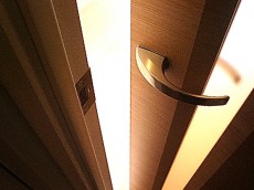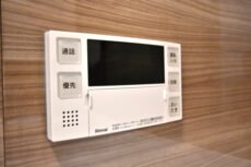 ドア横にはモニター付きインターホンが設置されて、お部屋の中からでも玄関前の様子を確認する事が出来ます。わざわざ玄関まで来なくて済むのは、手が離せない時などには助かりますね。