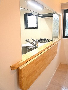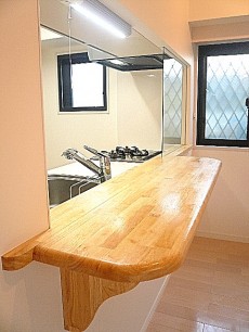木の温もり感じるカウンターです。こちらは優れものなんです!折り畳み式カウンターなので、
