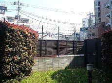 両サイドには緑の植え込みが目隠しの役目を~緑に包まれ癒しの目隠しになっています。