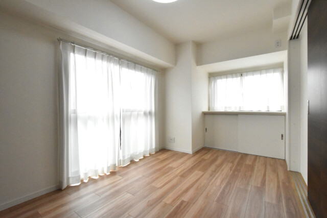 南東向きバルコニーに面したお部屋です。サービスルームとは「建築基準法上居室とは認めませんよ」というお部屋のこと。リノベ物件の場合はほとんど問題なく洋室として使えます。通常は窓がなかったリすることが多いので、なぜここがサービスルームなのかはわかりませんが、居心地の良さそうなお部屋ですよ。