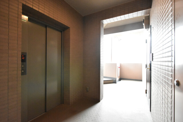 エレベーターで9階へ、そこから明るい共有廊下をお部屋へ向かいます。