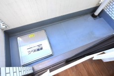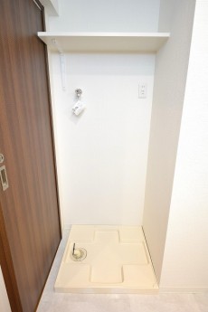 洗濯機置場の上には洗剤などが置けるよう棚板が設置されています。