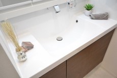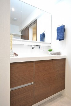 洗面室内には洗面化粧台、洗濯機置場、バスルームがまとまっています。