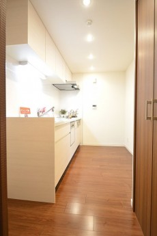 少し分かりずらいかもしれませんが、キッチンにはダイニングと廊下の二方向から入れるようになってました。買い物から帰って来てすぐキッチンに行けるのは便利ですよね。