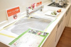 3口コンロ、浄水機能付き水栓、食洗機付きと設備も充実。