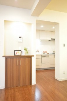 玄関を入ると正面はシューズBOX。左側に廊下が伸びています。
