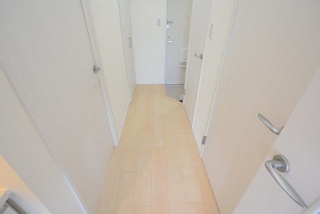 玄関を開けると、木目調が綺麗なフローリングや建具と真っ白なクロスが印象的な新しいお部屋がひろがります。