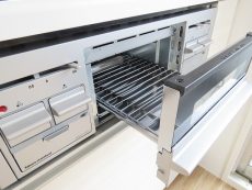 ワークトップはそこまで広くありませんが色々と物を置いておけそうなカウンターがありますので、スッキリとお使い頂けそうです。