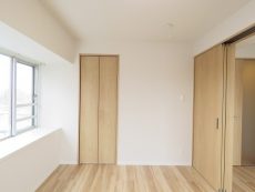 北側にクローゼットと収納棚が付いています。収納棚は可動式の棚板なので、収納する物に合わせて自由にアレンジしてみてください。