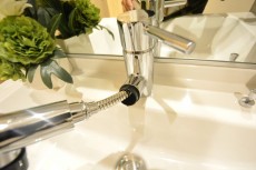 シンクも広々していて使いやすく、蛇口も延びるのでシンクのお掃除も楽々♪
