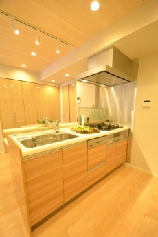 キッチンは3口のグリル付きガスコンロ、浄水機能付きの水栓、収納も申し分ありません。
