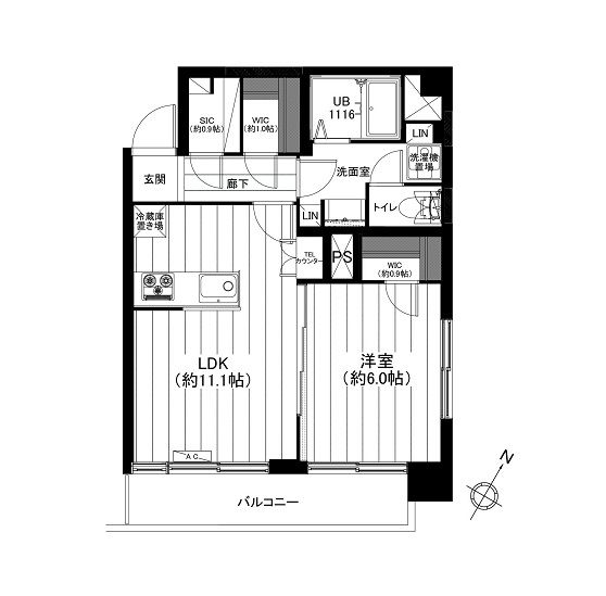 元々の面積が大きいので冷蔵庫を置いても狭くなることはないです!
