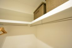 なんとこちらのお部屋も壁面一面に収納がつくられており、収納力◎!