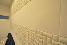 ソファー奥の壁には調湿、消臭効果のあるエコカラットが取り入れられています!