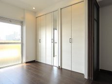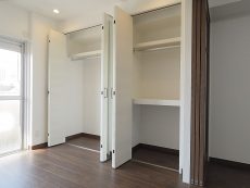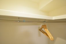 壁面一面がクローゼットになっており、たっぷり物が入ります。
