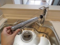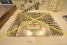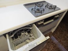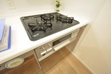 水栓は浄水機能付き、コンロは3口ガスコンロ。