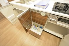 キッチンはクリナップ製。浄水器一体型水栓、食洗器、人工大理石トップとスペック◎!蛇口はひっぱるとシャワーになるのでシンクのお掃除やお野菜を洗う時にとても便利です。