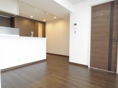 キッチンスペース側のフロアは廊下と同じつるりとしたフロアタイルになっています。