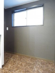 小さな窓がついている方の壁面はナチュラルな色合いの木目柄になっています。