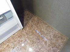 床は玄関ホールと同じく天然石のような柄が入ったブラウンのタイルです。
