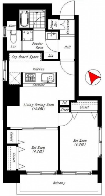 間取りのご紹介です。2LDK、専有面積は47.20㎡。
