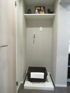 洋室の向かい側は洗面室。トイレ、洗濯機置場、洗面化粧台、バスルーム、と水まわりの設備が1か所にまとまっています。お掃除もまとめてこなしやすいのではないでしょうか。