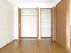 クローゼットと可動棚が付いた収納スペースが設けられています。