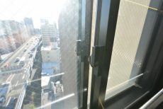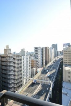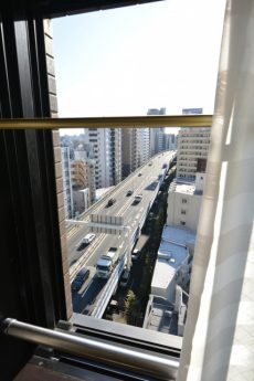 窓は二重サッシになっていました。開けてみると…なるほど下を高速道路が通っているんですね。閉めてあればほとんど気にならないから、二重サッシってほんとに凄いです。